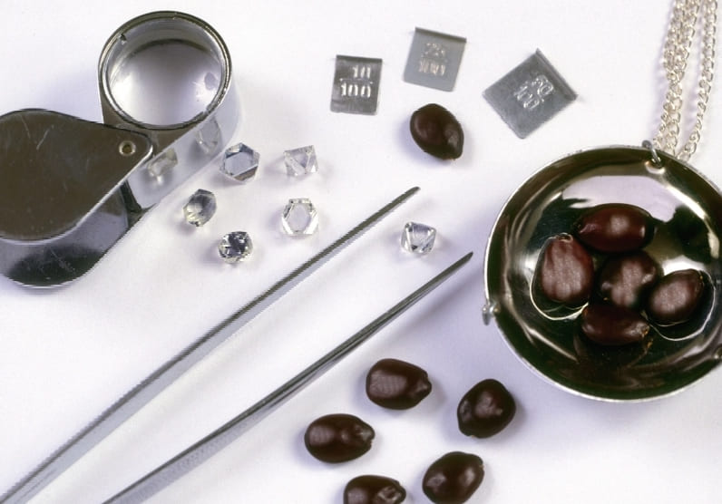 The term carat goes back to the seeds of the carob tree (Greek keration). As the seeds always have approximately the same weight, they were used from antiquity until the 19th century to determine the weight of a diamond. It was not until 1907 that the metric carat of 0.2 grams was introduced.